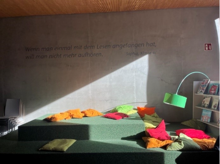 Dies ist der vermutlich ruhigste Ort der Schule. Hier gehen Lehrer manchmal mit ihren Klassen hin und lassen ihre Klassen lesen oder Anton App machen.